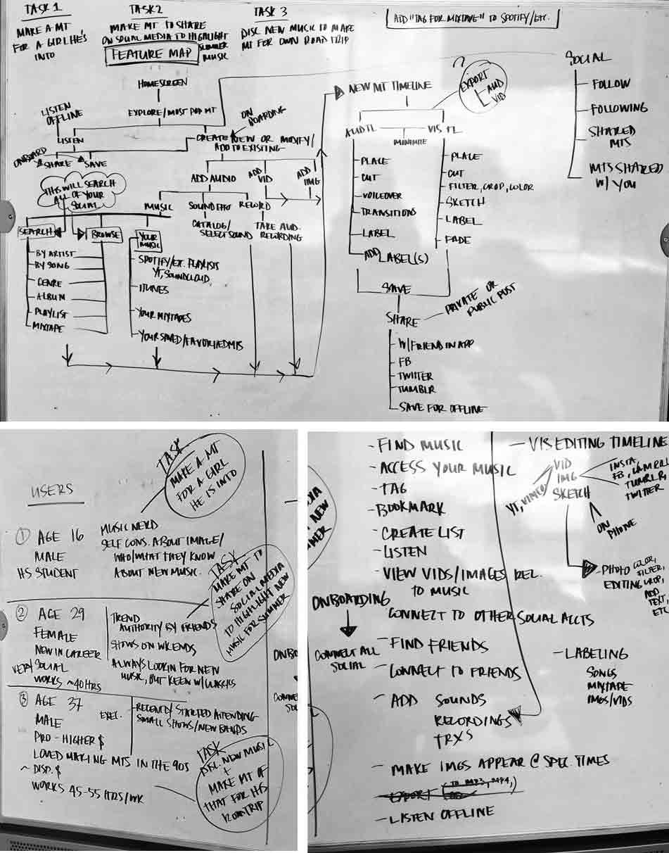 Once we had defined our user we built a feature list and transitioned that into the app structure. We brainstormed on the white board working through various iterations of the app structure in order to meet our various use cases.
